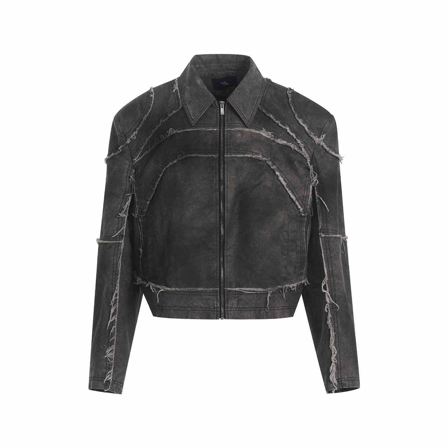 Gray Padded Shoulder Denim Coat