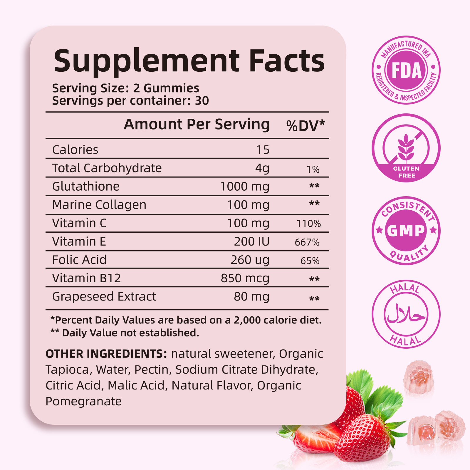 glutathione, collagen, multivitamin |